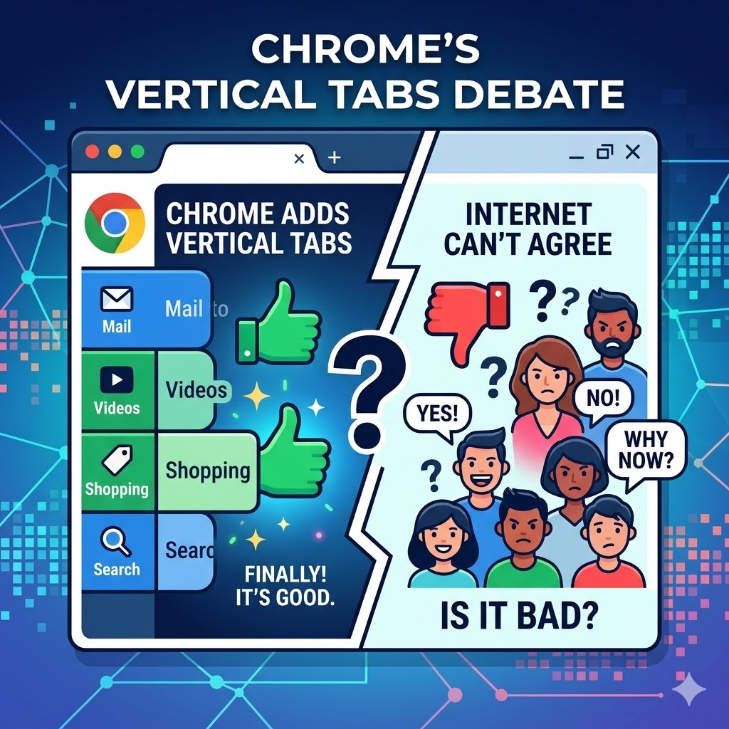 Chrome’s vertical tab launch generated immediate and divided community response across Reddit’s r/browsers thread, producing 3 distinct user positions that reflect genuine workflow differences rather than preference disagreements.
